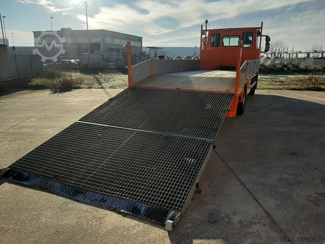 - 5.90 x 2.36 m bed / platform (internal measurements) with 40 cm sides, winch with remote control and double-acting hydraulic rear loading ramp for transporting vehicles and equipment