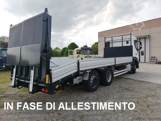 Cat: Iveco Stralis three axles, used truck, used lorry, trailer, flatbed vehicle transport, fixed body with hydraulic ramps, three axles