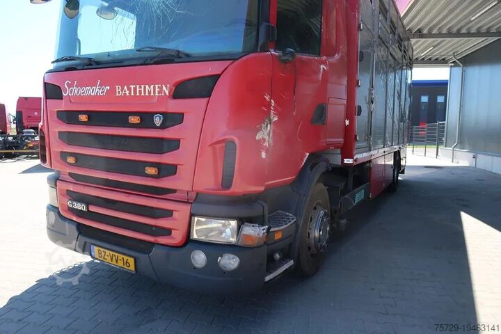 Damage to the cab and side of the livestock transporter. Vehicle is drivable. Engine and gearbox are in good condition.