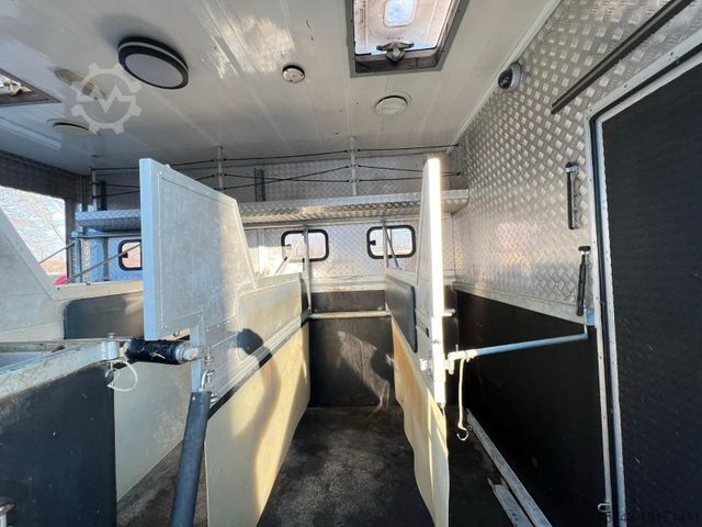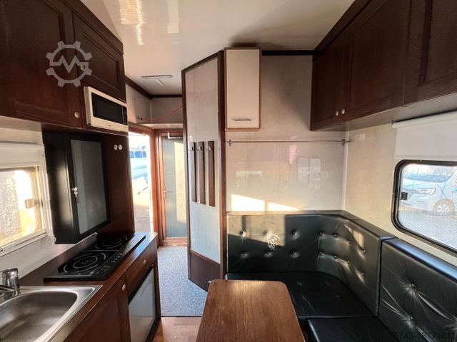 bathroom, shower, toilet, air conditioning, kitchen, seating area, microwave, refrigerator, external tack room, cable winch, cruise control, alloy wheels, air suspension, tow bar, and much more.