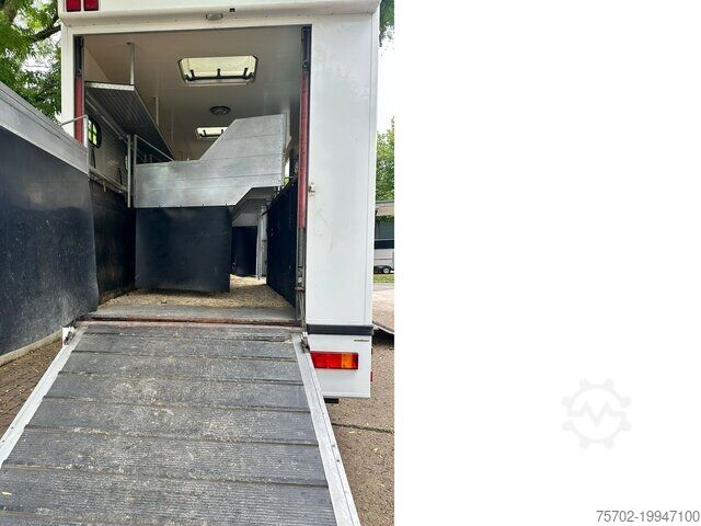 1st owner, reversing camera, TV, new general inspection (HU/AU), 6-horse diesel, manual transmission, 2x trailer couplings, walk-through to living area, 3 sleeping spaces, bed, seating area, TV, refrigerator, microwave, storage cupboards, shower, washbasin, WC, reversing camera, surveillance camera in the horse compartment, rear and side ramp, roof hatch, windows in horse compartment, 2x external tack rooms, saddle and bridle racks, saddle box. 1st owner. Permissible gross weight: 14,500 kg. Special-purpose registration on 18.10.1999.