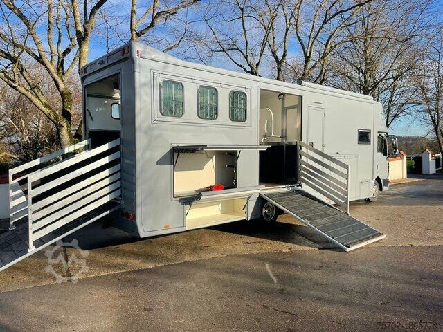 Roof hatch, green environmental badge (4), reversing camera, TV, HU/AU new, popout 5 horses manual gearbox Euro 4 green environmental badge diesel breakthrough 3-seater auxiliary heating 2x air conditioning generator trailer coupling reversing camera air suspension apartment 2-4 sleeping places seating area TV hob microwave sink storage cupboards separate bathroom WC washbasin shower window in horse compartment rear and side ramp ramp limiter roof hatch external tack room saddle holder storage compartments permissible total weight 11.990 kg motorhome registration FOR US THE CONDITION AND THE FEEL OF THE CONSTRUCTION IS DECISIVE, THE PRICE TAKES SECOND PLACE If you have any further questions, please do not hesitate to contact Mr. Faller on the number. //*EXCHANGE, DEPOSIT OR RETIREMENT OF YOUR VEHICLE, AS WELL AS FINANCING POSSIBLE! All information without guarantee* You will find further offers on our homepage: The description and data given do not constitute a guarantee and are not binding. The contract of sale concluded at the dealership when the vehicle is purchased is binding. Subject to errors and prior sale!