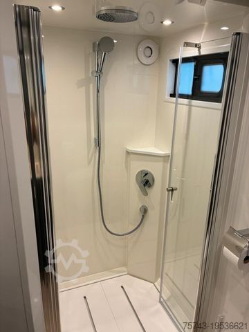 LG stationary air conditioning, Kabola water heater with underfloor heating, dishwasher, washing machine, 2 TVs with satellite, fine wood finish, bathroom, shower, WC, air conditioning, kitchen, leather seating lounge, microwave, refrigerator and freezer, external saddle locker, winch, cruise control, alloy wheels, navigation system, air suspension, steerable rear axle, trailer coupling, and much more.
