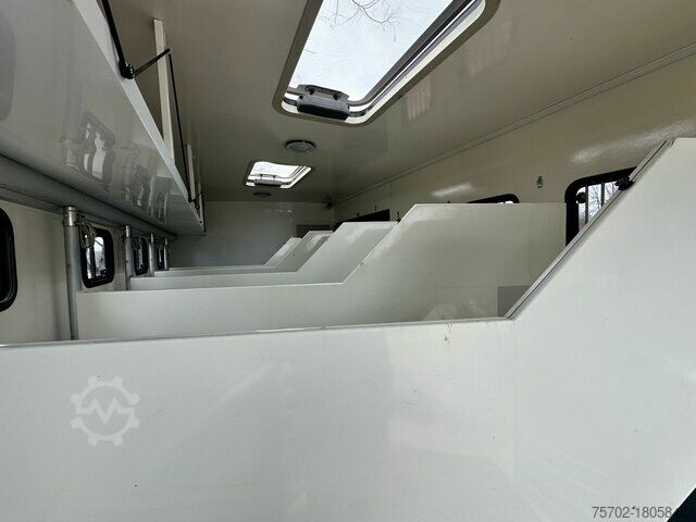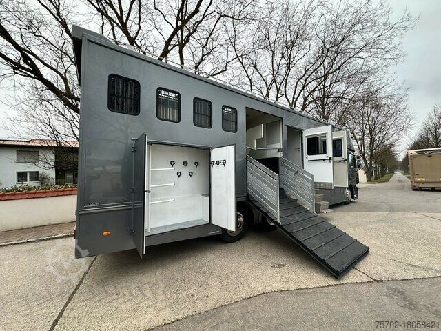 Roof hatch, top sleeper, partition wall, green environmental sticker (4), TV, outside temperature display, diesel automatic full air suspension Euro 5 green environmental sticker outside temperature display air conditioning auxiliary heating 2 tow bars 2 seats apartment breakthrough seating area top sleeper 4-5 sleeping places popout sink refrigerator microwave hob storage cupboards TV shower toilet washbasin separate grooming compartment 6 horses + box rear and side ramp ramp limiter window in horse compartment roof hatches surveillance camera in horse compartment ramp for saddle box external saddle room saddle and bridle holder permissible total weight 25,000 kg FOR US THE CONDITION AND OUR GUT FEELING ARE DECISIVE, THE PRICE COMES SECOND. If you have any further questions, Mr. Faller will be happy to help you on the number. //*EXCHANGE, TRADE-IN OR LOAN FOR YOUR VEHICLE, AS WELL AS FINANCING POSSIBLE!All information without guarantee* You can find further offers on our homepage: The description and data provided do not represent a guarantee and are not binding. The purchase contract that is concluded in the car dealership when purchasing the vehicle is binding. Errors and prior sale reserved!