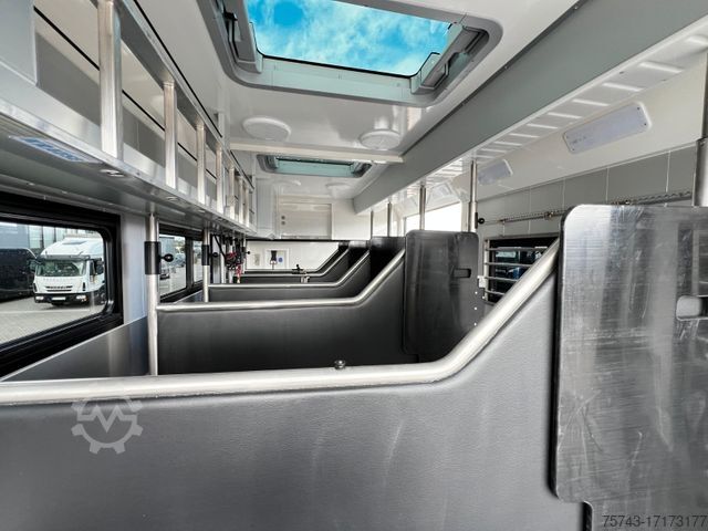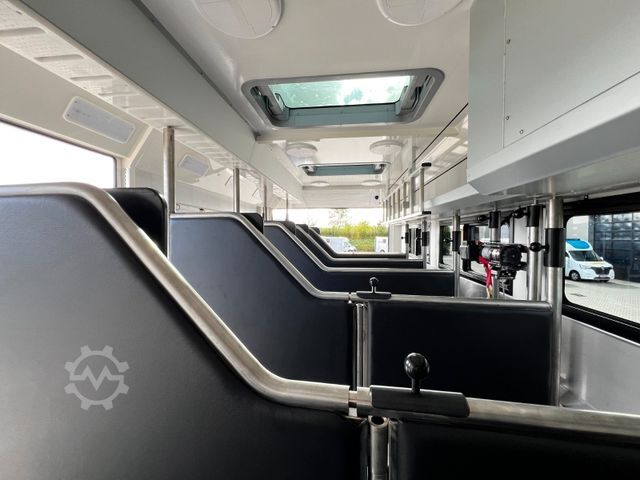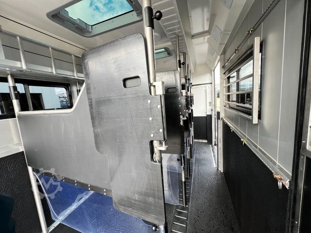 6 horses, side and rear ramp, pop-out, pop-up, kitchen downstairs, cellar under apartment, storage compartments around the truck, 6 KW diesel generator, 550 liters fresh water, 300 liters waste water,
