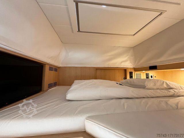 6-7 berths, living room, large bed above the bathroom, extra groom's bed, video surveillance and temperature monitoring for horse compartment,