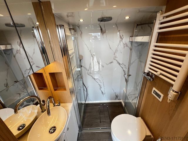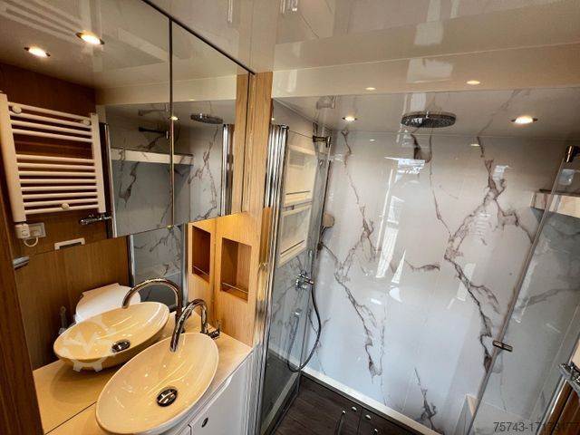 LG auxiliary air conditioning, auxiliary heating, 2Tv/Sat, fine wood, bathroom, shower, WC, air conditioning, kitchen, leather seating area, microwave, fridge and freezer, dishwasher, external saddle locker, cable winch, cruise control, alloy wheels, navigation system, air suspension, steerable rear axle, trailer hitch, and much more.