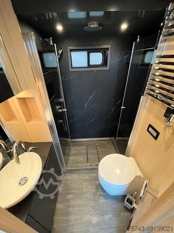 6 horses, side and rear ramp, pop-out, pop-up, cellar under the living area, storage compartments around the truck, 6 kW diesel generator, 550 liters of fresh water, 300 liters of waste water,