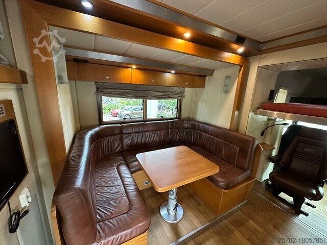 Roof hatch, top sleeper, partition wall, green environmental sticker (4), reversing camera, TV, radio/CD, new MOT/AU, diesel automatic Euro 4 green environmental sticker popout 7 seats radio/CD air suspension auxiliary heating air conditioning trailer hitch reversing camera breakthrough top sleeper 6 sleeping places bed above the shower seating area 3x TV storage cupboards sink hob oven fridge separate bathroom toilet shower washbasin passage from the apartment to the horse compartment rear and side ramp ramp limiter 6 horses windows in the horse compartment, some of which can be opened roof hatches head partition 2 folding partitions surveillance camera in the horse compartment cable winch diesel generator cellar motorhome registration permissible total weight 26,000 kg vehicle was registered for its intended purpose on December 29, 2008. FOR US, THE CONDITION AND OUR GUT FEELING ARE DECISIVE, THE PRICE COMES SECOND. If you have any further questions, Mr. Faller will be happy to help you on the number. //*EXCHANGE, TRADE-IN OR LOAN FOR YOUR VEHICLE, AS WELL AS FINANCING POSSIBLE!All information without guarantee* You can find further offers on our homepage: The description and data provided do not represent a guarantee and are not binding. The purchase contract that is concluded in the car dealership when purchasing the vehicle is binding. Errors and prior sale reserved!