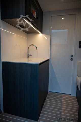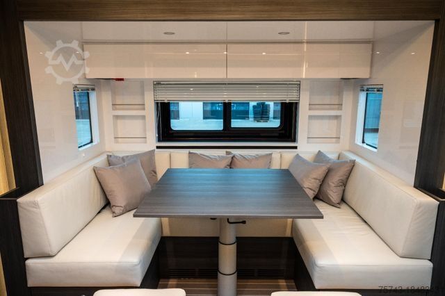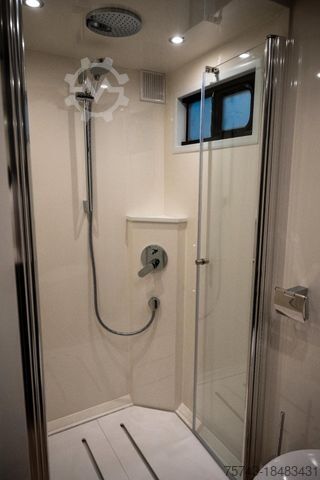 LG auxiliary air conditioning, auxiliary heating, 2 TVs/satellite, fine wood, bathroom, shower, toilet, air conditioning, kitchen, leather seating group, microwave, refrigerator and freezer, dishwasher, external saddle cabinet, cable winch, cruise control, alloy wheels, navigation system, air suspension, steerable rear axle, trailer hitch, and much more.