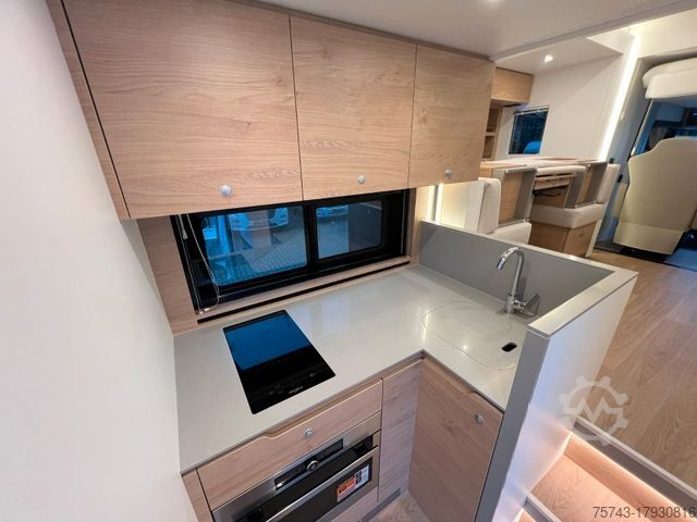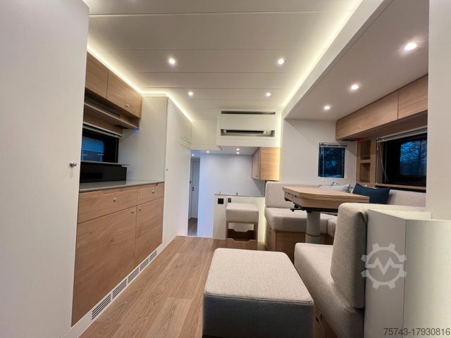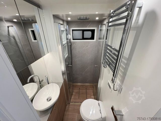 LG auxiliary air conditioning, auxiliary heating, 2Tv/Sat, fine wood, bathroom, shower, WC, air conditioning, kitchen, leather seating area, microwave, fridge and freezer, dishwasher, external saddle locker, cable winch, cruise control, alloy wheels, navigation system, air suspension, steerable rear axle, trailer hitch, and much more.