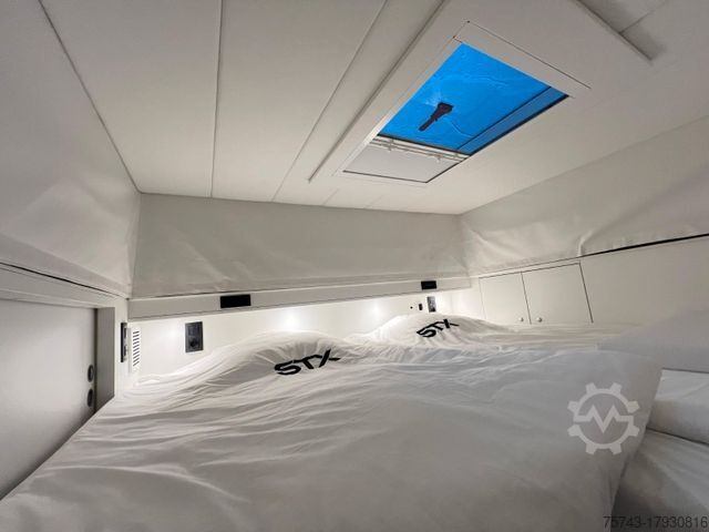 6-7 berths, living room, large bed above the bathroom, extra groom's bed, video surveillance and temperature monitoring for horse compartment,