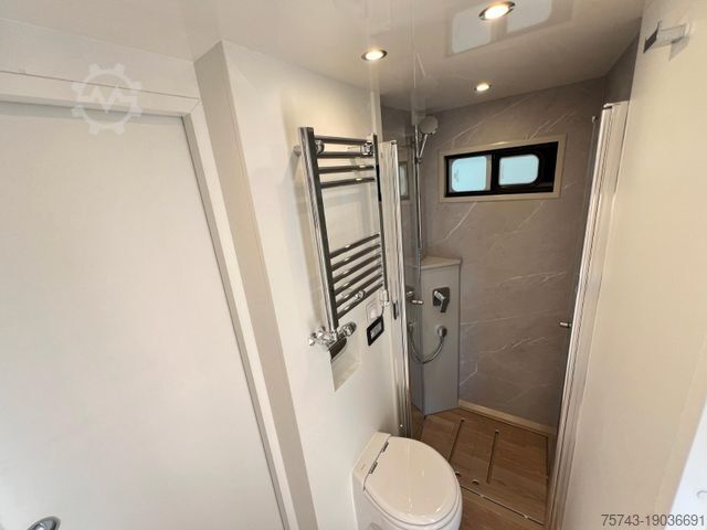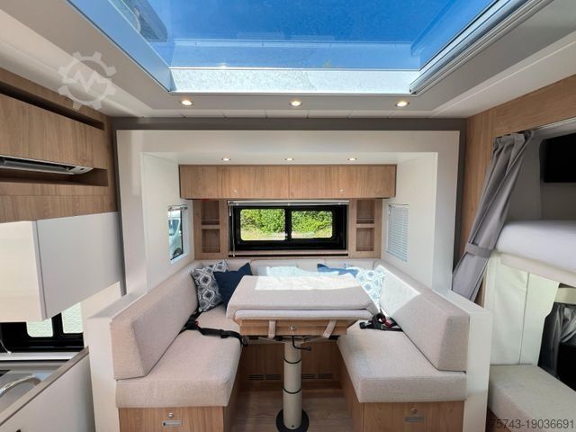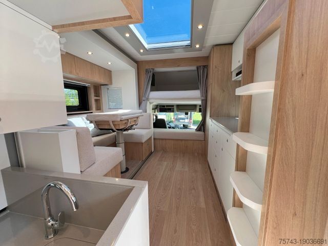 LG parking air conditioner, Kabola water heating with underfloor heating, dishwasher, 3 TVs/satellite, fine wood, bathroom, shower, toilet, air conditioning, kitchen, leather seating area, microwave, refrigerator and freezer, external tack cabinet, cable winch, cruise control, alloy wheels, navigation system, air suspension, steerable rear axle, tow bar, and much more.