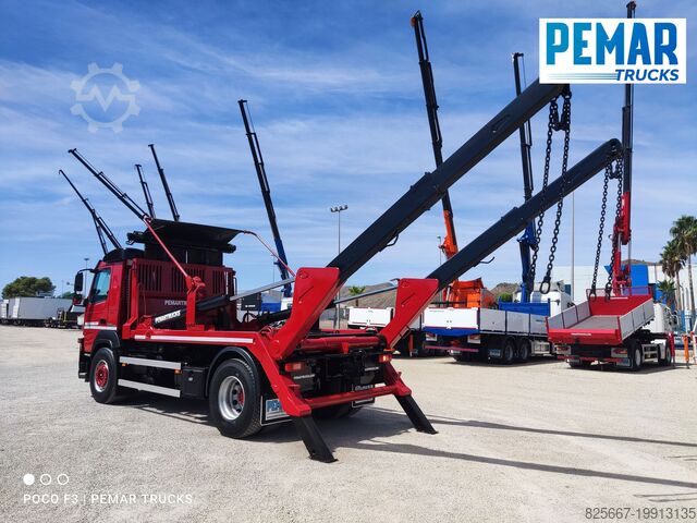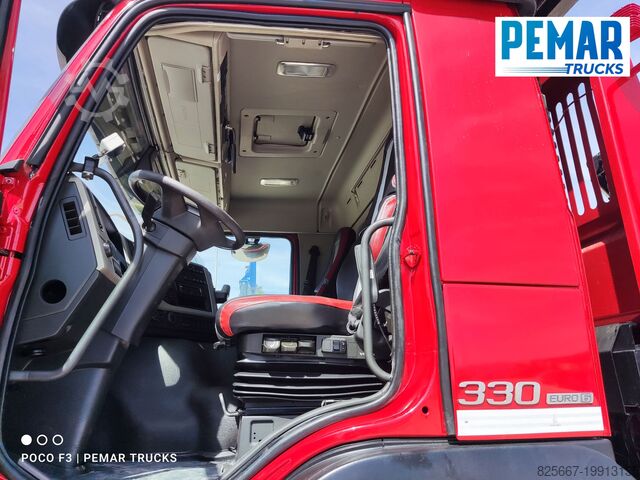 REF.: 2961. Жёсткий грузовик Volvo FM 330, EURO 6, контейнеровоз с цепным оборудованием VDL модели P-18, предназначен для перевозки контейнера длиной примерно 4 или 4,5 м, автоматическая коробка передач, кондиционер, передняя подвеска на рессорах, задняя пневматическая подвеска, задние стабилизаторы, сцепное устройство для прицепа, размер передних шин 385/65r22.5, задних — 315/80r22.5, база 4,0 м, полная масса 18 000 кг, грузоподъёмность 7 500 кг... автомобиль в отличном состоянии!