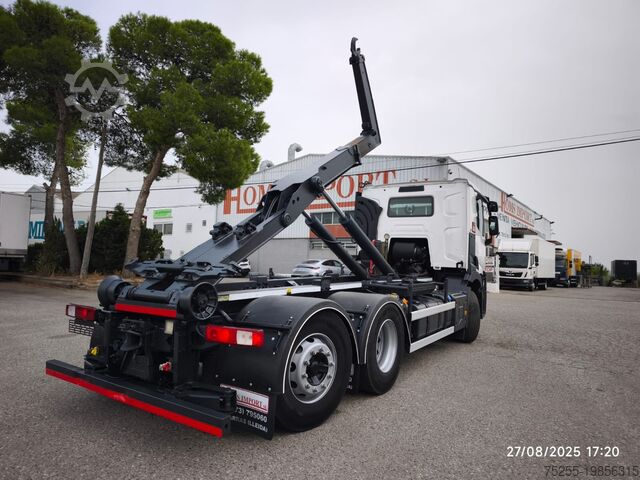 Extras: Air conditioning, automatic transmission, Optibrake retarder, liftable and steerable third axle, rear air suspension, cruise control, CD radio, onboard computer, electric windows, hill-start assist, central locking, trailer coupling, etc.