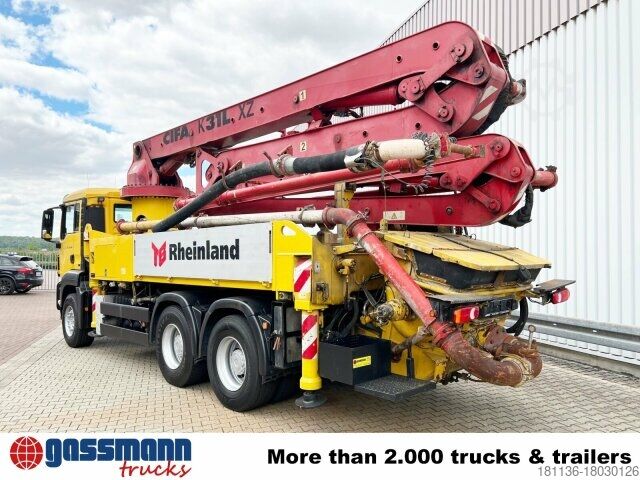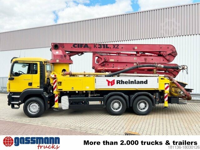 Wheelbase: 4200 mm Body: CIFA concrete pump type K31L XZ with 4-point outriggers and 31 m boom length (vertical) Gearbox ZF 16 S 252 OD, MAN BrakeMatic, M cab, auxiliary drive NH/1.