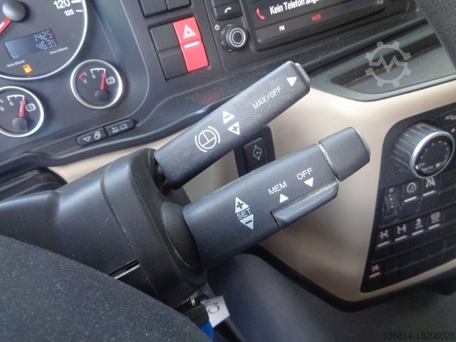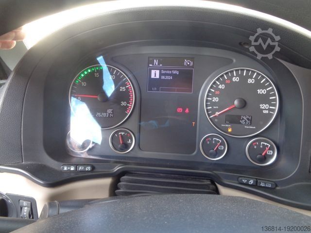 Reversing alarm, leaf spring suspension, engine brake, outside temperature display, differential lock, disc brake, sun visor, air seat, heated outside mirror, electric outside mirror, CB radio, tachograph, underrun protection, twin tires, used vehicle
