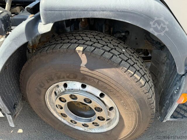 Front axle: Tire size: 385/65R22.5; Alloy wheels; Max. axle load: 8,000 kg; Steered; Tire tread left: 90%; Tire tread right: 90%; Suspension: Leaf spring