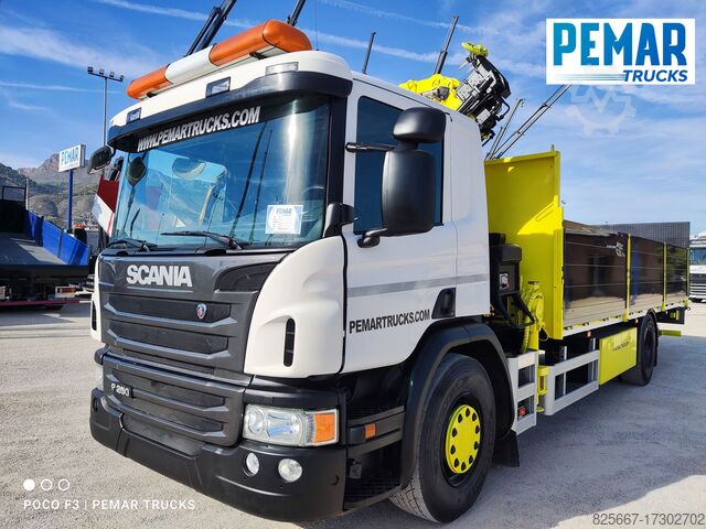Ref.: 2802. 4X2 жесткий грузовик марки SCANIA модель P 250, EURO 6, оборудованный краном HIAB 122 E-5 HIPRO, с 3 гидравлическими удлинителями (возможность добавления еще нескольких), размеры крана по вертикали 10 высота и горизонтали 8,50 м, радиоуправление краном управления, передние стабилизаторы, внутренние размеры коробки 7 м в длину X 2,53 м в ширину X 0.90 м в высоту, алюминиевые борта, пол из листового металла, автоматическая коробка передач, кондиционер, подъемная платформа ZEPRO на 2.000 кг с беспроводным управлением, передняя подвеска с рессорами и пневматическая задняя, передние шины размером 385/65r22.5 и задние 295/80r22, колесная база 5.50 м, КБП 18.000 кг, грузоподъемность 7.500 кг,... в отличном состоянии!!!!