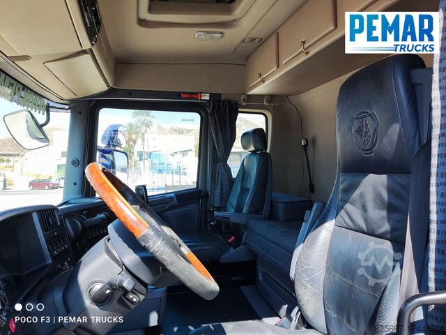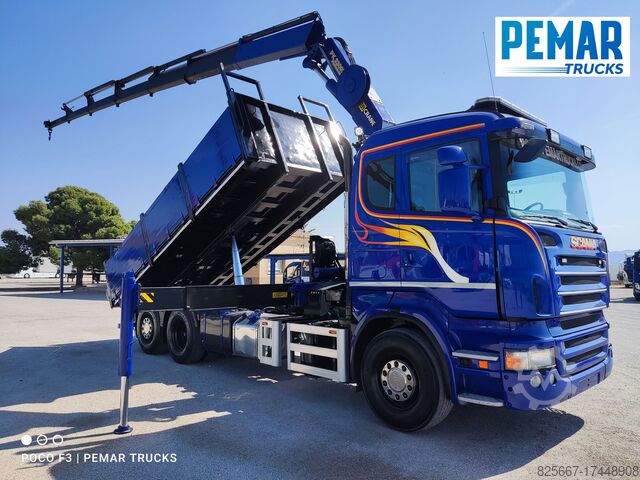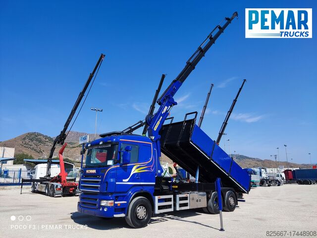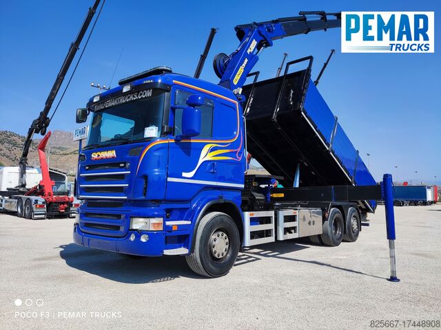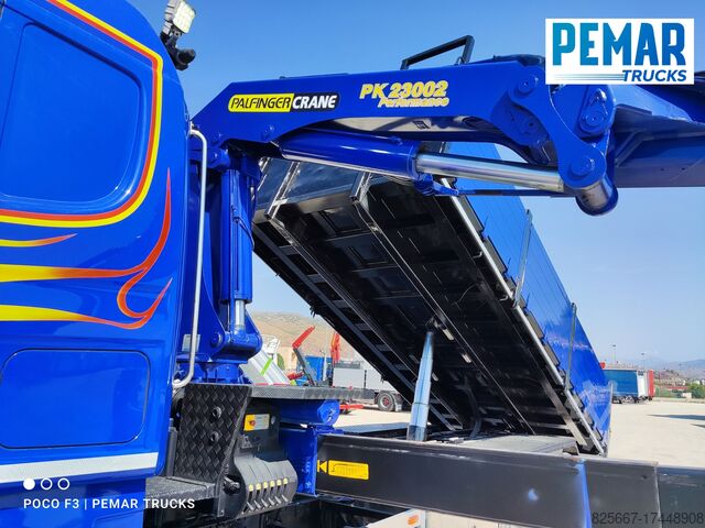 Справка: 2641. Жёсткий грузовик 6x2 марки SCANIA модель R 420, EURO 6, оснащён краном PALFINGER PK 23002 с 5 гидравлическими выдвижными секциями и одной ручной (возможность добавить дополнительные секции), максимальный горизонтальный вылет крана 14,4 м, вертикальный – 17 м, грузоподъёмность на максимальном вылете 1130 кг, ПЕРЕДЕЛАН ПОД EURO 6, радиоуправление, передние стабилизаторы, самосвальная платформа внутренними размерами 5,83 м длина x 2,52 м ширина x 0,90 м высота борта, полуавтоматическая коробка передач, моторный тормоз, кондиционер, 1 спальное место, прицепное устройство, 3-й подъёмный и управляемый мост, передняя подвеска рессорная, задняя пневматическая, размеры шин 1-го и 3-го мостов 385/65R22.5, 2-го моста 315/80R22.5, колесная база 4,9 м, полная масса 26 000 кг, грузоподъёмность 12 000 кг, транспорт в идеальном состоянии!