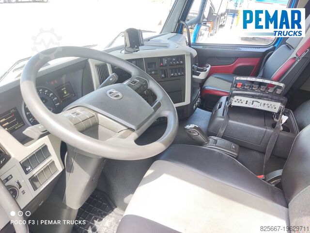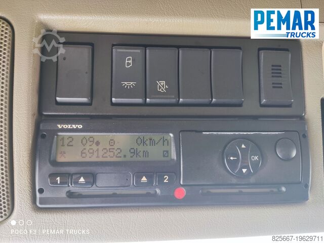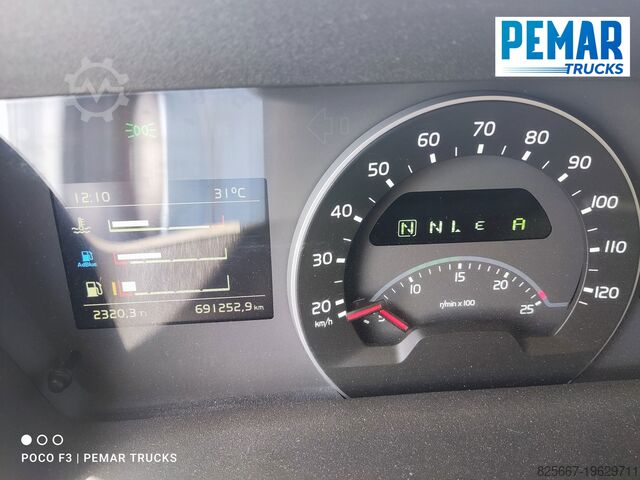 Ref.: 2894. Жёсткий грузовик 4x2 марки VOLVO модель FM 330, EURO 6, оснащён краном марки HIAB модель 144 DS-4 HIDUO с 4 выдвижными секциями (возможность установки дополнительных, как ручных, так и гидравлических), рабочий вылет крана по горизонтали – 10,5 м, по вертикали – 12,5 м, грузоподъёмность на максимальном вылете – 1 080 кг, беспроводной радиопульт управления краном, передние выносные опоры, стационарная кузовная платформа с внутренними размерами 5,34 м в длину, 2,48 м в ширину и 0,80 м высотой алюминиевого борта, автоматическая коробка передач, кондиционер, камера заднего вида, передняя подвеска рессорная, задняя пневматическая, размер шин 315/70R22.5, колёсная база 4,60 м, максимальная разрешённая масса – 18 000 кг, полезная нагрузка – 7 500 кг… в идеальном состоянии!