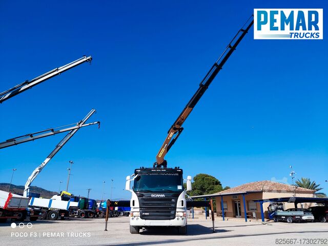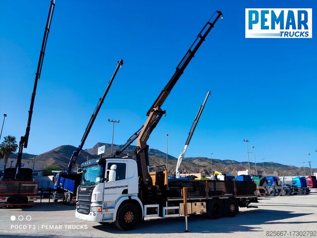 Ref.: 2696. Жесткий грузовик 6X2 марки SCANIA модель P 420, оборудованный краном PALFINGER PK 20002, с 5 гидравлическими удлинителями (возможность добавления еще нескольких), размеры крана по вертикали 18 м в высоту и 15 м по горизонтали, передние стабилизаторы, EURO 5, внутренние размеры будки 7,30 м в длину X 2,52 м в ширину X 0.80 м в высоту, алюминиевые борта, 1 спальное место, полуавтоматическая коробка передач, кондиционер, камера заднего вида, радиоуправление краном, прицепное устройство, встроенная пневмоподвеска, 3-я ось подъемная и направляющая, размер шин 1-й и 3-й осей 385/55r22.5 и 2-й оси 315/70r22.5, колесная база 5.30 м, оборудован подъемной платформой марки ZEPRO на 1 500 кг, PMA 26 000 кг и грузоподъемностью 13 000 кг, ... в отличном состоянии!!!!