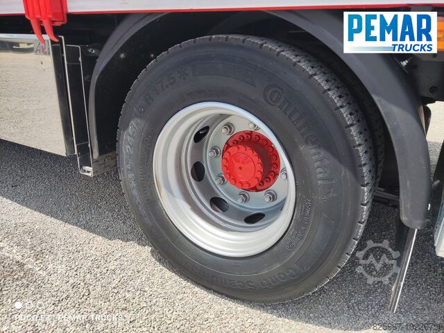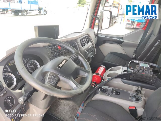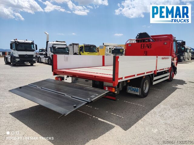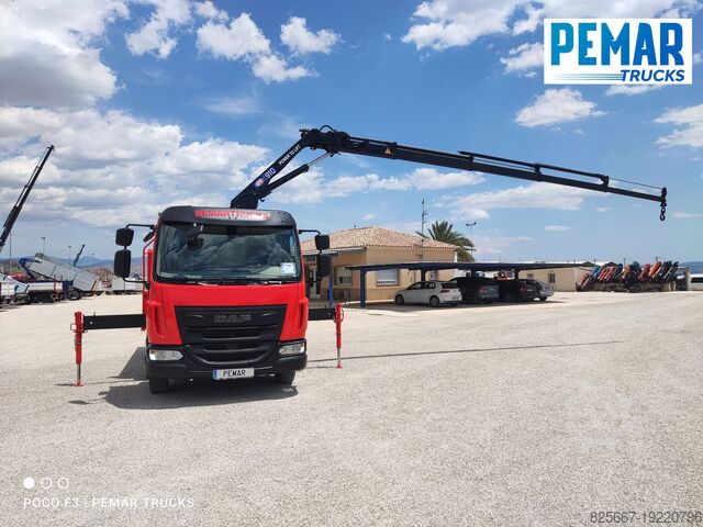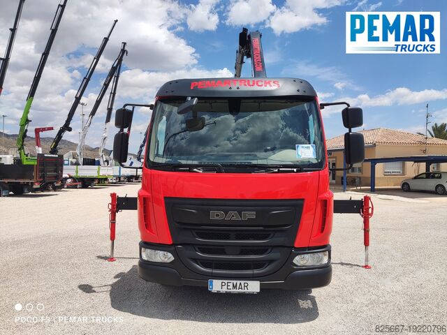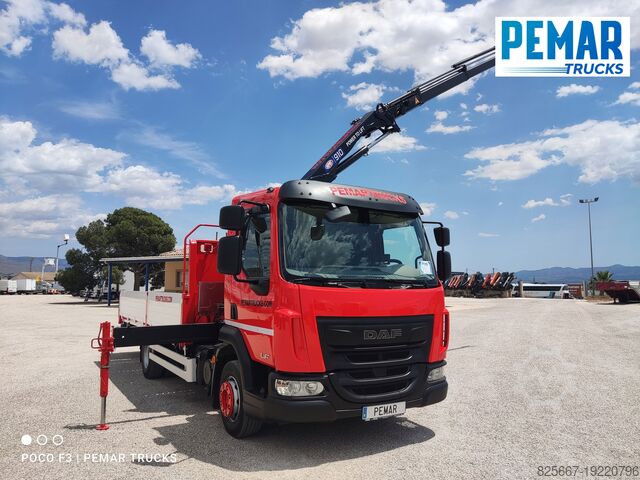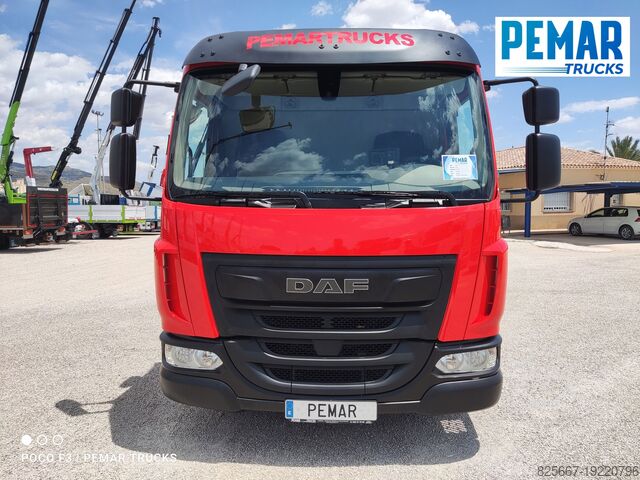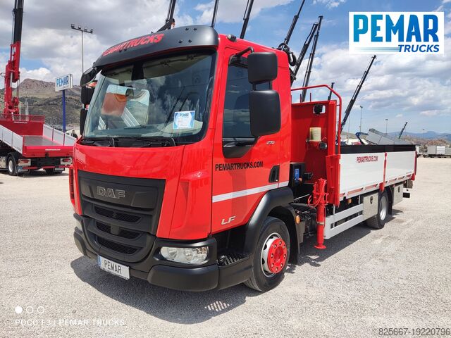 Ref.: 2948. Грузовой автомобиль с жесткой рамой марки DAF 4x2 модели LF 210, EURO 6, оборудованный краном марки HMF модели 910K-RC, с 4 гидравлическими удлинителями (возможность добавления дополнительных), горизонтальные размеры крана 11 м, нагрузка на оголовок 600 кг, дистанционное радиоуправление, передние стабилизаторы, ОТКРЫТЫЙ КОРОБ с полом из листового металла, внутренние размеры 4,77 м в длину x 2,43 м в ширину x 0,50 м в высоту, алюминиевый борт, автоматическая коробка передач, кондиционер, передняя рессорная подвеска и задняя пневматическая подвеска, подъемная платформа марки PALFINGER на 1500 кг, алюминиевая складная подъемная дверь, размеры шин 245/70r17.5, колесная база 3,90 м в длину, полная масса 12 000 кг, полезная нагрузка 5500 кг, ... в идеальном состоянии !!!