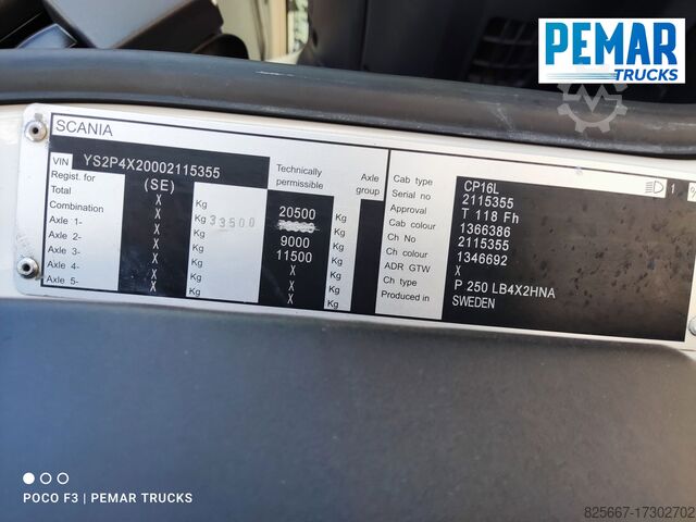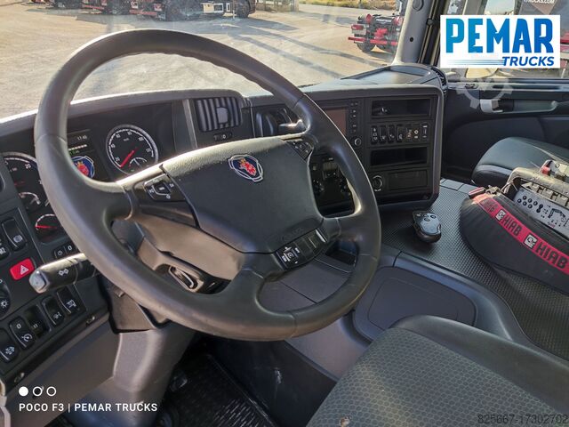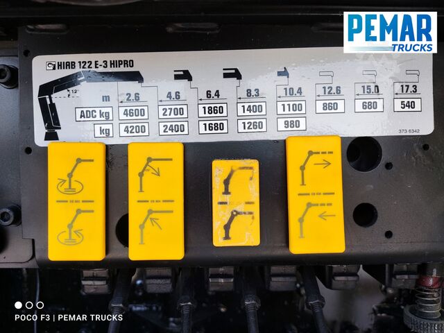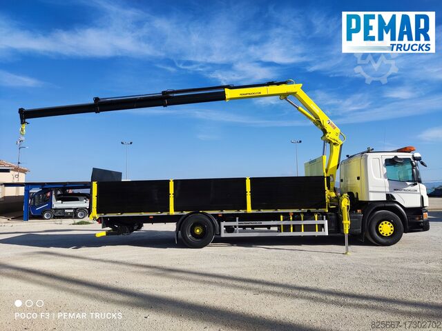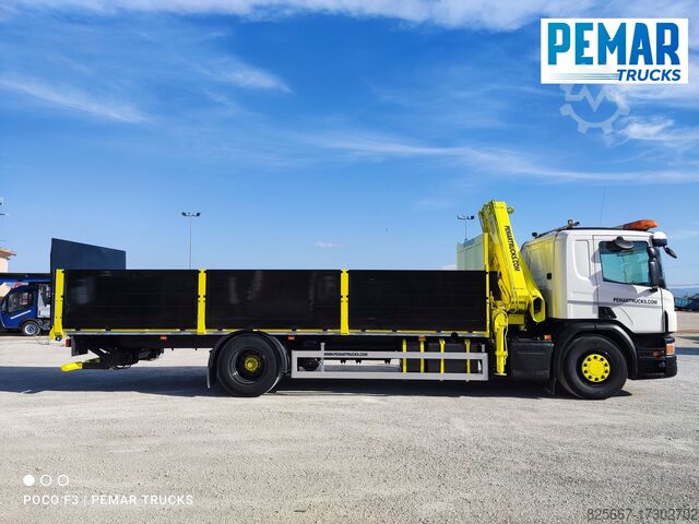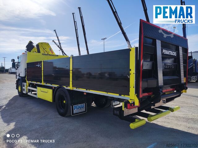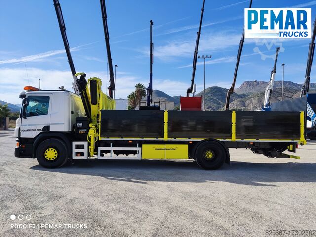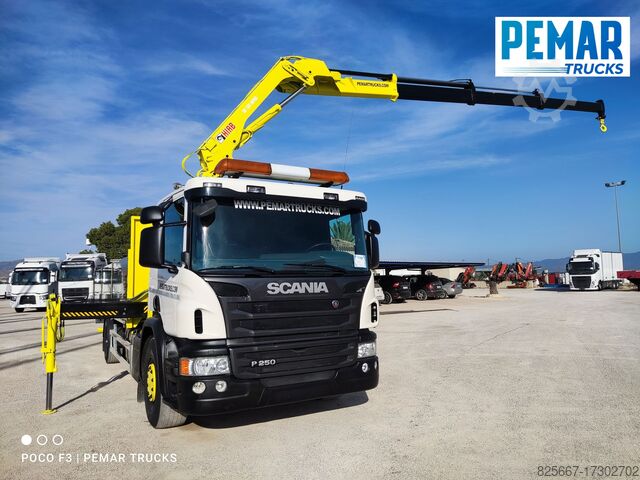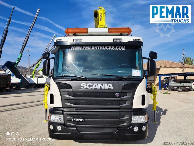 Ref.: 2802. 4X2 жесткий грузовик марки SCANIA модель P 250, EURO 6, оборудованный краном HIAB 122 E-5 HIPRO, с 3 гидравлическими удлинителями (возможность добавления еще нескольких), размеры крана по вертикали 10 высота и горизонтали 8,50 м, радиоуправление краном управления, передние стабилизаторы, внутренние размеры коробки 7 м в длину X 2,53 м в ширину X 0.90 м в высоту, алюминиевые борта, пол из листового металла, автоматическая коробка передач, кондиционер, подъемная платформа ZEPRO на 2.000 кг с беспроводным управлением, передняя подвеска с рессорами и пневматическая задняя, передние шины размером 385/65r22.5 и задние 295/80r22, колесная база 5.50 м, КБП 18.000 кг, грузоподъемность 7.500 кг,... в отличном состоянии!!!!