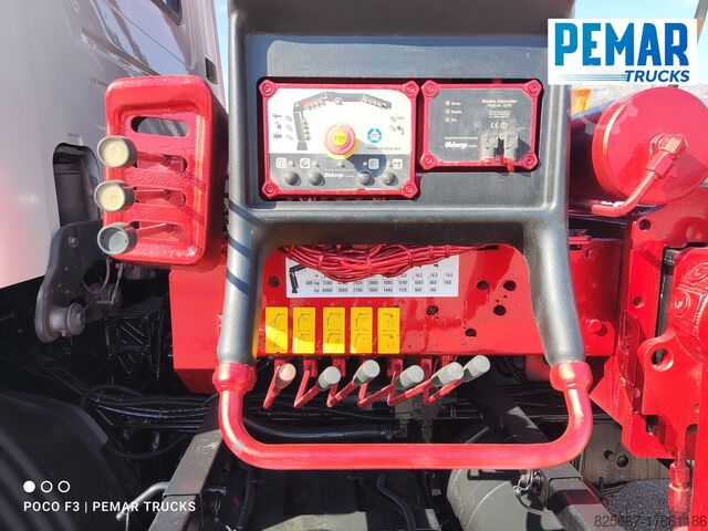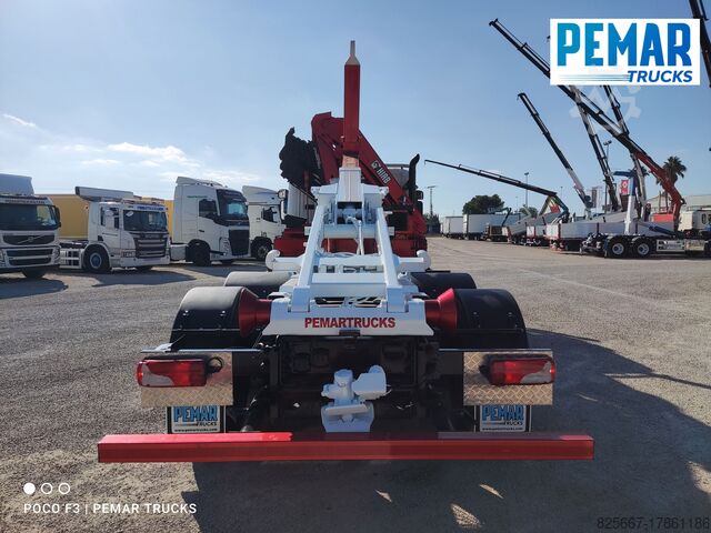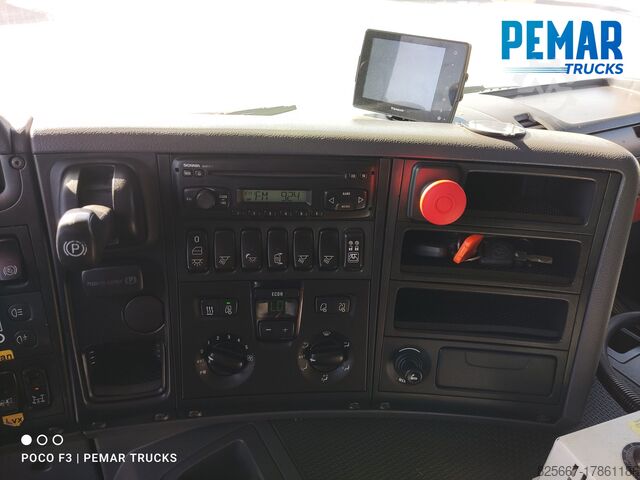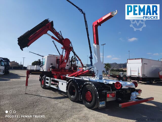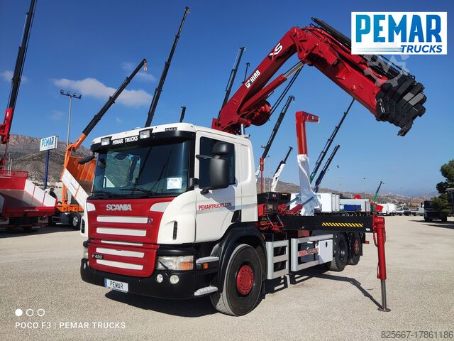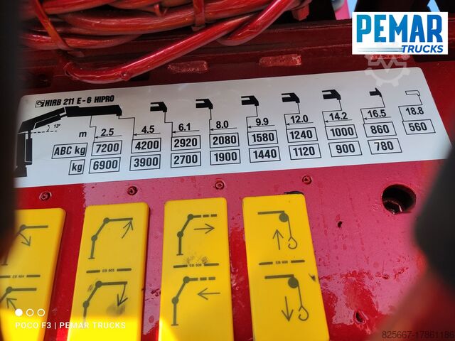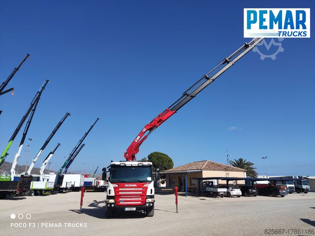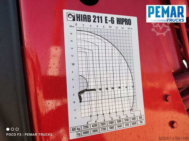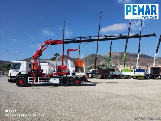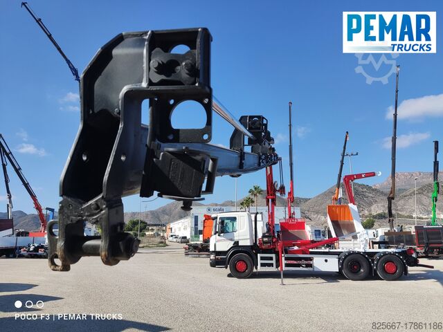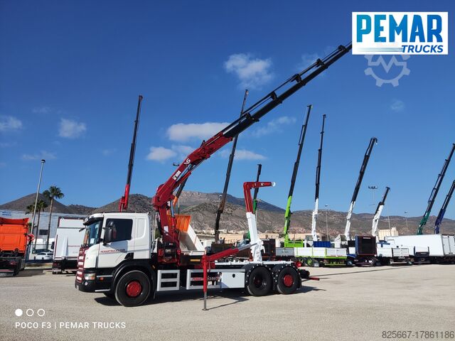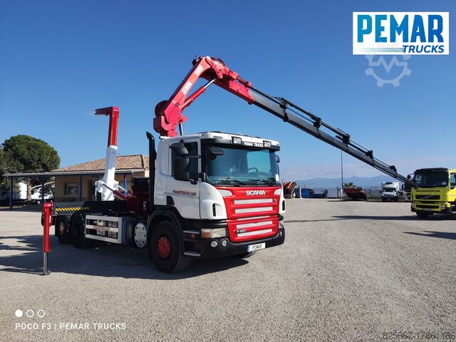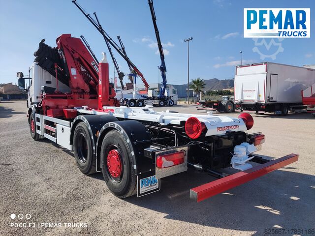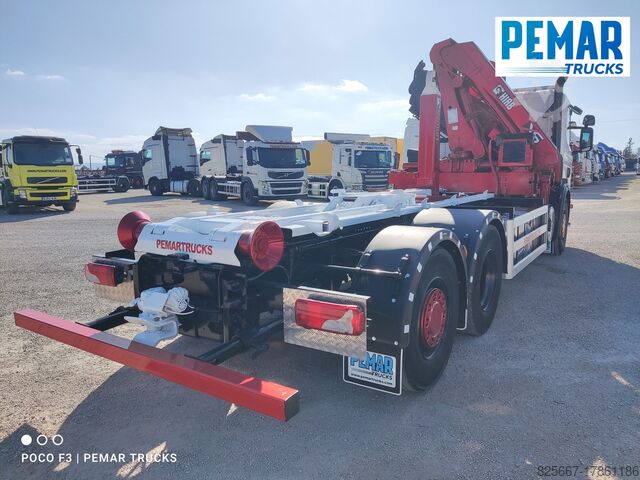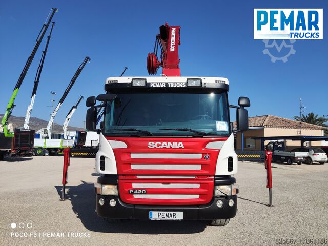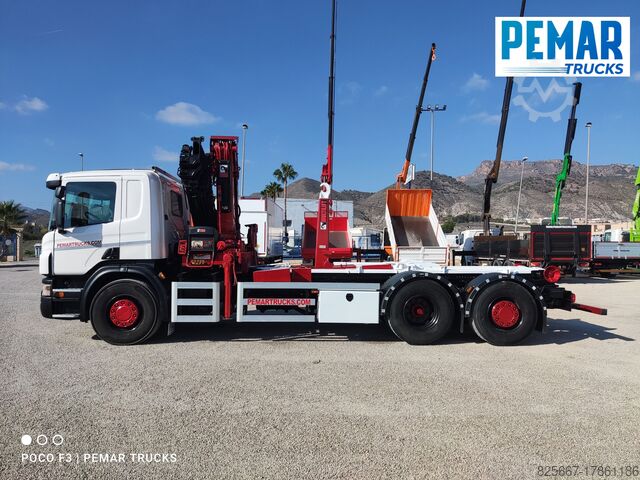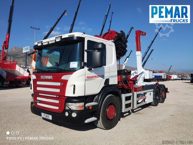Ref.: 2879. Жесткий грузовик 6X2 SCANIA модель P 420, EURO 5, оборудованный краном HIAB модель 211 E-6 HIPRO, с 6 гидравлическими удлинителями, размеры крана по вертикали 19 м в высоту и по горизонтали 16.5 м, вес наконечника 780 кг, радиоуправление краном, и крюк MULTILIFT марки HIAB грузоподъемностью 17 тонн (для кузовов длиной до 6 м примерно), Длина до центра роликов 5 м, Ширина от ролика до ролика 1,07 м, Высота до центра крюка 1.50 м, до конца выдвижного бампера 5.75 м, механическая коробка передач, тормоз двигателя, 1 спальное место, кондиционер, камера заднего вида, прицепное устройство, передняя рессорная и задняя пневматическая подвески, подъемник 3-й оси и рулевое управление, размер шин 1-й и 3-й оси 385/65r22.5 и 2-й оси 315/80r22.5, колесная база 4.8 метра, КБМ 26.000 кг, грузоподъемность 12.500 кг...в отличном состоянии!!!!