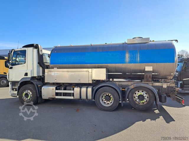 , Manufacturer: DAF - Type/Model: CF 450 FAN - 15,000 Ltr. / 1 chamber - First registered: December 16, 2019 - Mileage: 794,067 km - Number of axles: 3 - Emissions class: Euro 6 - Driver's cab: M - Transmission: Automatic - Continuous brake: Engine brake - Suspension: Air - Lift axle - Steering axle - Brake: Disc - Air conditioning - Length: 8,610 mm - Width: 2,550 mm - Height: 2,550 mm - Unladen weight: 11,110 kg - MOT date: March 2026 - Body manufacturer: Schwarte/Jansky - Tank material: Stainless steel - Total tank volume: 15,000 L - Tank chambers: 1 - System designation: Jansky Optimate - Stainless steel centrifugal pump - DiCo 700 - Mitex III - Data transfer - CIP cleaning - Dome pan