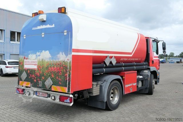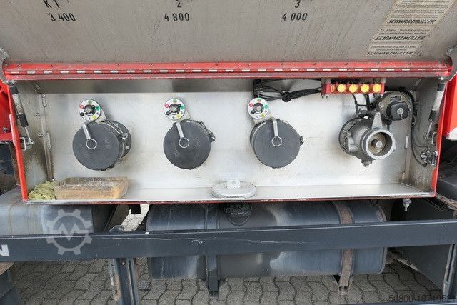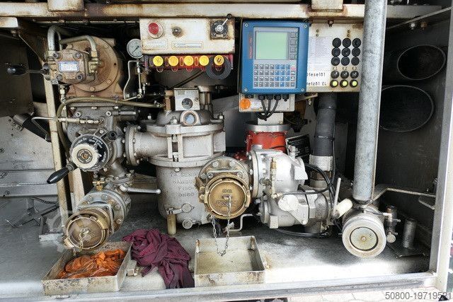SCHWARZMÜLLER топливная цистерна, предназначенная для перевозки горюче-смазочных материалов, общий объем 13 800 литров, 3 секции: 1-я секция — 3 850 л, 2-я секция — 5 410 л, 3-я секция — 4 540 л; 3 люка, насосная установка SENING для умеренного опорожнения, модель GMV-FpH, максимальная производительность 1 000 л/мин, температурная компенсация PETRODAT, ADR категория FL, AT; проход по верху цистерны, задний штуцер для заполнения прицепа; шланговая катушка с ок. 40 м / 38 мм цельным шлангом с топливным пистолетом спереди справа, шланговая катушка с ок. 60 м / 32 мм цельным шлангом с топливным пистолетом сзади справа; бак для дизельной присадки 40 л, бак для присадки к мазуту 40 л; чековый принтер, дистанционное управление, ABS, ASR, круиз-контроль, моторный тормоз с постоянным дросселем, отбор мощности, блокировка дифференциала задней оси, кондиционер, наружные зеркала с обогревом и электроприводом, электростеклоподъемники на двери водителя и пассажира, люк, комфортное пневматическое сиденье водителя, противотуманные фары, сигнальная проблесковая маячковая лампа, аккумуляторный выключатель, цепи противоскольжения, пневмоподвеска с механизмом подъема/опускания задней оси, алюминиевые диски. Возможна оклейка машины рекламой и/или фирменными надписями.