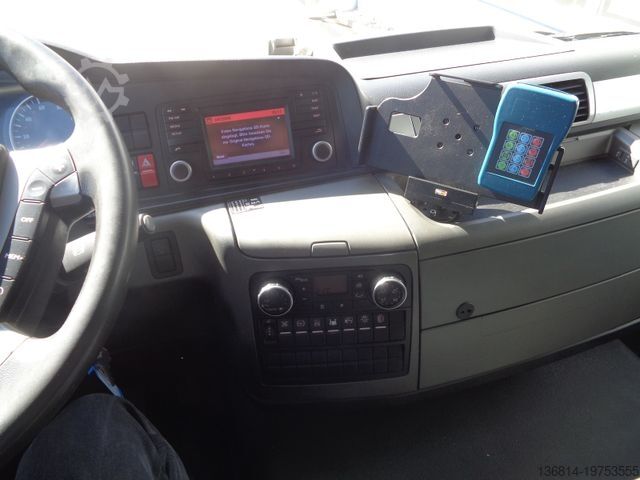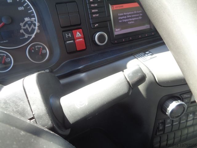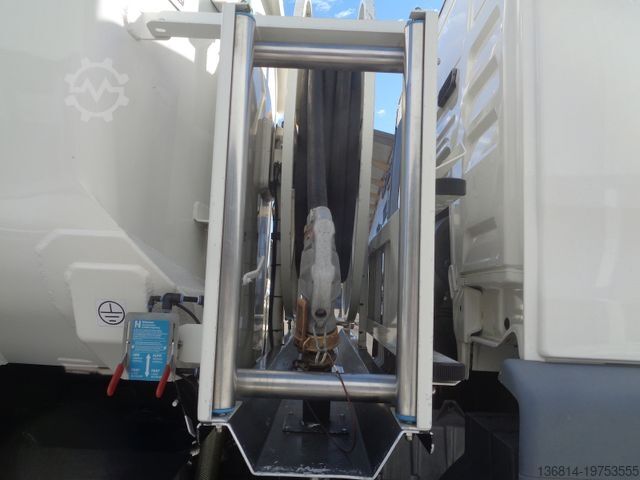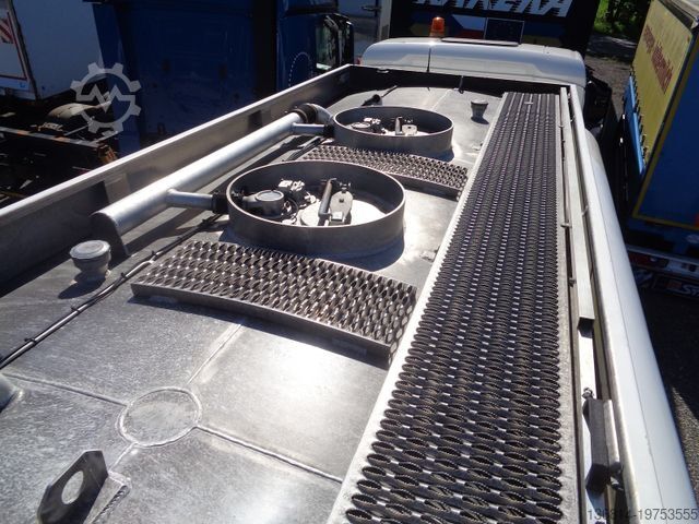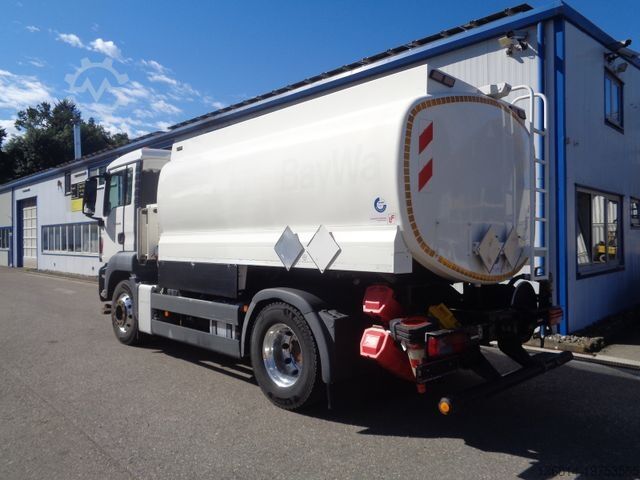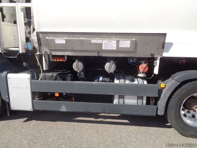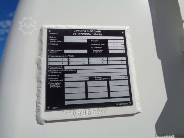 Vehicle No. 3183, ESP, multifunction steering wheel, cruise control, radio/navigation, rear axle differential lock, snow chains, auxiliary heater, automatic climate control, reversing camera, front axle leaf suspension, rear axle air suspension, tires: 315/70 R22.5, aluminum rims, EURO 5 EEV, Lindner + Fischer tank body year: 2013, 2 compartments 7,200 L + 6,800 L, 2 x hose reels front + rear, TOP + BOTTOM FILLING, 2 x dome covers, walkway with handrail, empty weight: 8,450 kg, : 18,000 kg, first owner, for inquiries please. Errors and prior sale excepted.