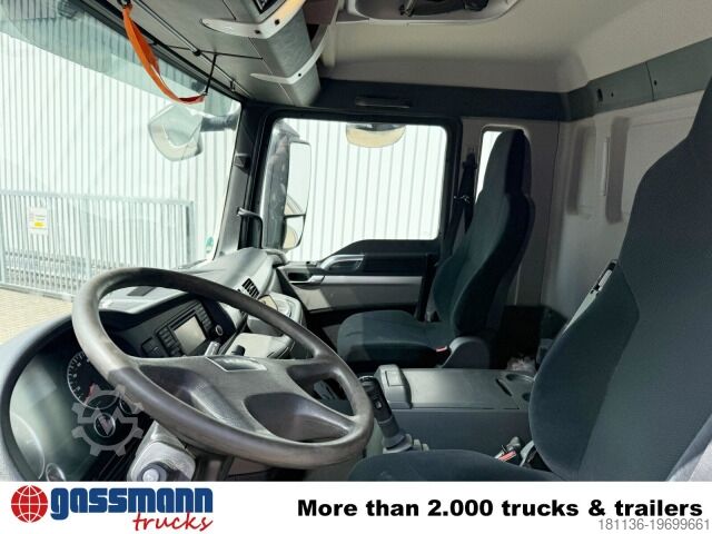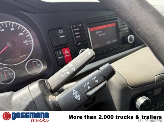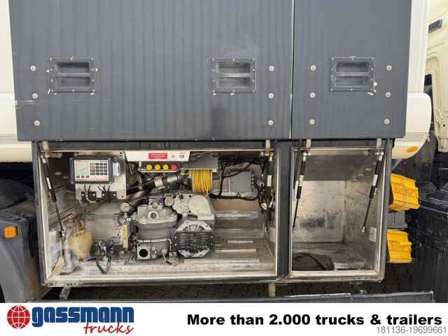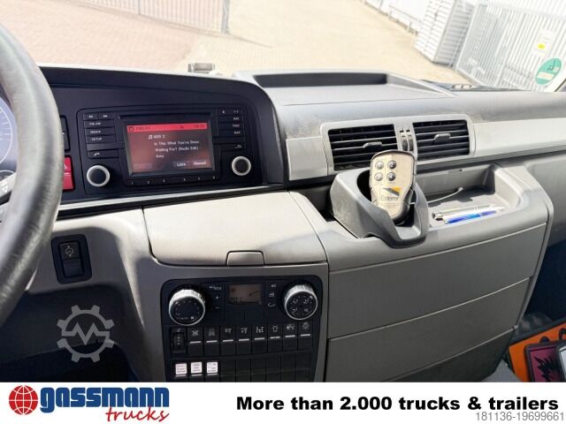 Vehicle location: Bovenden, main facility, 1x comfort seat, seat heating, electric mirrors, heated mirrors, electric window (left), electric window (right), air conditioning, sun visor, cruise control, 16-speed manual transmission, ABS (anti-lock braking system), traction control (ASR), constant throttle, power take-off, differential lock, fog lights, work lights, rotating beacon, storage box, ADR equipment, fire extinguisher box, steel and air suspension, liftable rear axle, trailer coupling with air and light connections, aluminum tank, underride protection, side aluminum guard, radio remote control, green environmental badge.