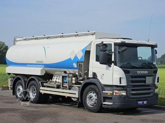 Number of axles: 3, configuration: 6x2, twin tires, unladen weight: 10,085 kg, gross weight: 26,000 kg, total tank capacity: 300 liters, fifth wheel coupling: Fixed, number of locks: 1, suspension type: air suspension, type of cab: short cab, cruise control, tachograph (control device), digital tachograph, electric windows, electric mirrors, color: white, heated mirrors, reversing camera, lighting type: halogen lamp, speed limiter, fuel: diesel, Euro: 5, transmission type: manual, transmission model: Scania, speed limiter, gears: 8, clutch pedal, power steering, ABS, ASR, power take-off, PTO type: 1, starter battery, central locking, seat configuration: 1+1, seat material: fabric, seat adjustment: manual