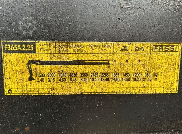 * Fassi crane F365A.2.25 mounted at the rear (folded),