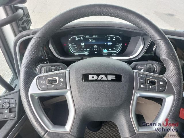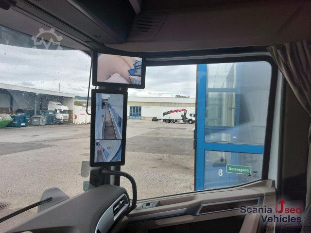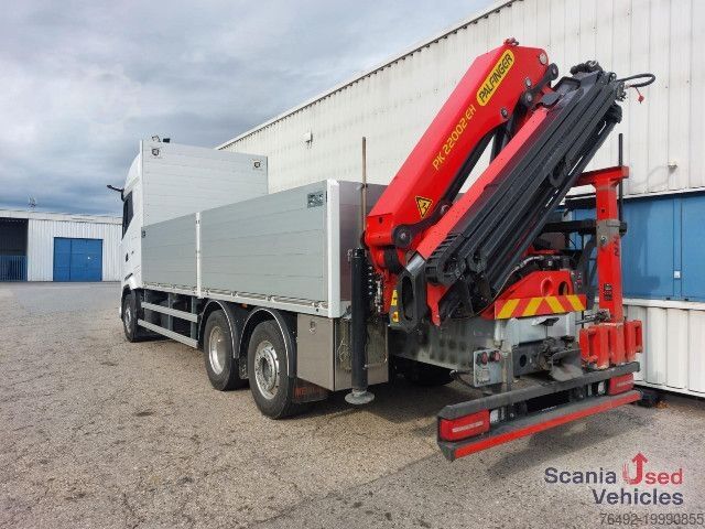 Unladen weight: 15,621 kg, permissible gross weight: 26,000 kg, cargo area (L W H): 6,450 mm x 2,450 mm x 1,000 mm, cargo volume: 15 m³, air suspension, steerable lift axle, Intarder: retarder, rear-loading crane, electronic braking system (EBS), electronic stability program (ESP), traction control system (ASR), comfort seats, seat heating, radio, reversing camera, power steering, adjustable steering column, ALCOA alloy wheels, central locking, sun visor, luxury package, 2x toolboxes, cooler box, rotating beacon, axle load indicator, turn assist, digital exterior mirrors, XG driver’s cab with 2 beds (lower bed electrically adjustable), camera system, retarder, air horns, MEINGAST flatbed body L6450 W2450 H1000, PALFINGER PK 22002-EH D rear crane, outreach 14.7 m / 1,080 kg, pallet fork, rotator, payload 10,304 kg, warranty TÜV until 05-2026, XLRASF5300G465324. Non-binding offer, errors and prior sale excepted. Image may not correspond to the offer.