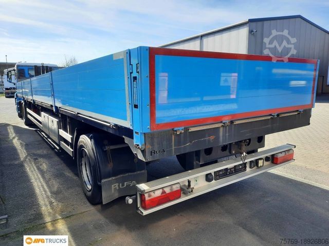Flatbed semi-trailer with Rufa trailer. Stake pockets in the cargo area floor, insertable stanchions with brackets on the right. The trailer is steered via a turntable. The trailer is included in the price of the tractor unit. ----* MAN BrakeMatic (Electronic Braking System)