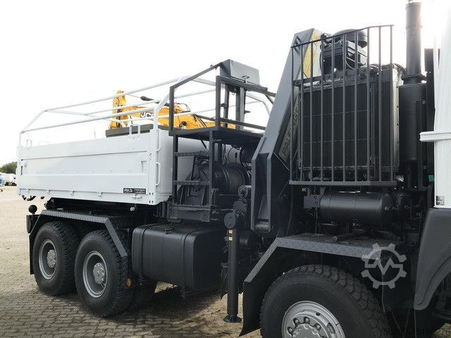 Тяжелый полноприводный тягач 8x8 для тяжелых грузов прицепов, ремонтно-эвакуационных работ и т. д., гидротрансформатор WSK, нагрузка на задний прицеп 100 000 кг, переднее сцепное устройство для толкания, 2 эвакуационные лебедки Rotzler по 200 кН каждая (40 000 кг). Длина троса ок. 50 м, 1 лебедка самовытаскивания Rotzler с тросом 80 кН (8000 кг), длина ок. 55 м, 1 вспомогательная лебедка Rotzler для вытягивания двух тросов подъемной лебедки 6 кН (600 кг), длина троса ок. 100 м, 1 х кран-манипулятор Palfinger PK 8200A на 2,5 м = 3150 кг, на 7,7 м = 970 кг, грузовая площадка ок. 3650 мм, высота боковой стенки ок. 680 мм, место для груза для балласта и Горное снаряжение, вес стали и балласта ок. 13 000 кг, преодолеваемый подъем при 20% ок. 110 000 кг, бак ок. 400 + 210 литров, двигатель 10-цилиндровый с турбонаддувом, проходимость вброд 800 мм, отличное состояние, автомобиль можно покрыть рекламой. и/или иметь маркировку