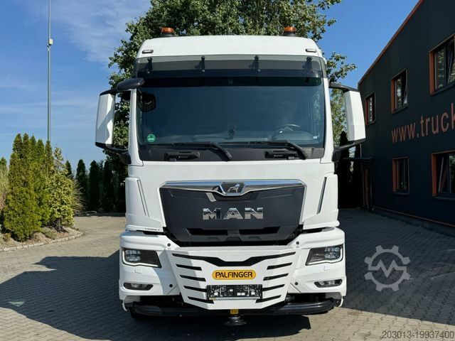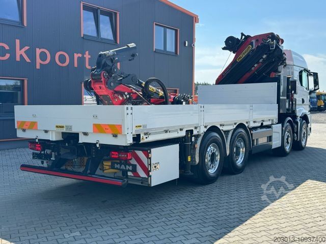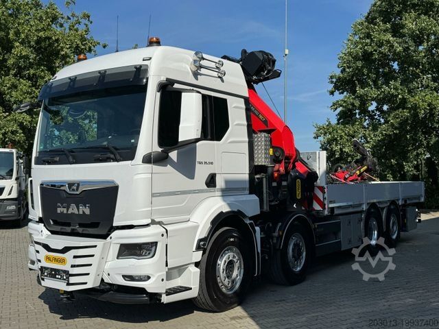 MAN TGS 35.510, 8x4H-6 BL (8x2/6 with HydroDrive) 4-axle platform truck with loading crane mounted behind the cab