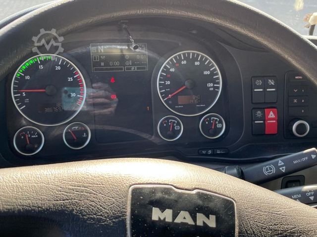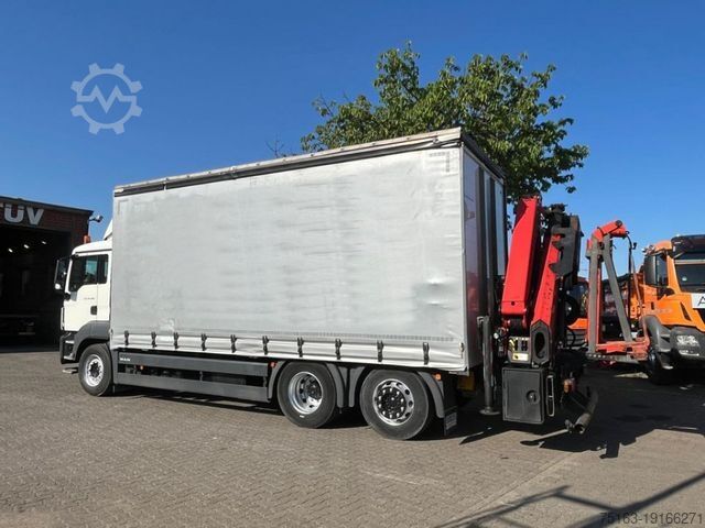 ----Special body: Crane: Palfinger PK 19001 SLD 5, max. load capacity 5.75 t, foldable, radio remote control + floor control, 5-stage hydraulic extension (working height approx. 17.9 m), fully hydraulic outriggers, oil cooler, 6th and 7th control circuits for rotary servo and stone grab operation. Load diagram reading: Lifts at 4.3 m - 4 t, 6.3 m - 2.55 t, 8.3 m - 1.84 t, 10.4 m - 1.4 t, 12.6 m - 1.12 t, 14.7 m - 0.95 t.----Body: Flatbed, sliding tarpaulin left and right, sliding roof, hardwood floor, tie-down holes.