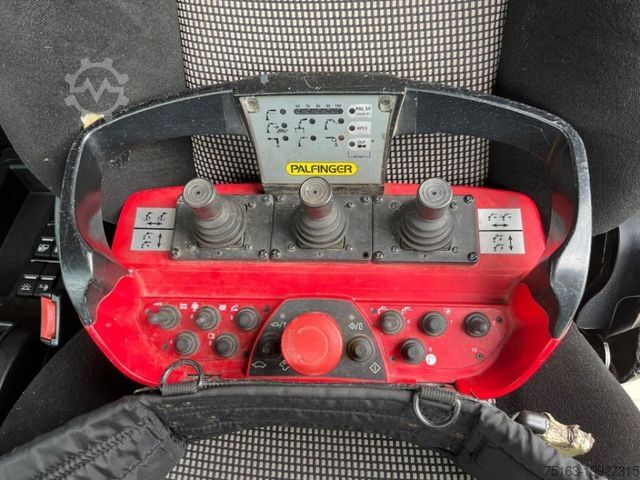 ----Special Superstructure: Crane: Palfinger PK 24001-KC (Single Link Plus), max. lifting capacity 5.8 t, foldable, radio remote + walk-around controls, 4x hydraulic extension (working height approx. 15 m), fully hydraulic outriggers, oil cooler, 6th + 7th control circuit for rotator and stone grapple function. Read load chart: lifts 5.6 t at 4.1 m, 3.6 t at 6.1 m, 2.65 t at 8.1 m, 1.05 t at 10.2 m, 1.66 t at 12.4 m.----Body: BDF swap body frame (galvanized) for 7.45 m BDF swap bodies.