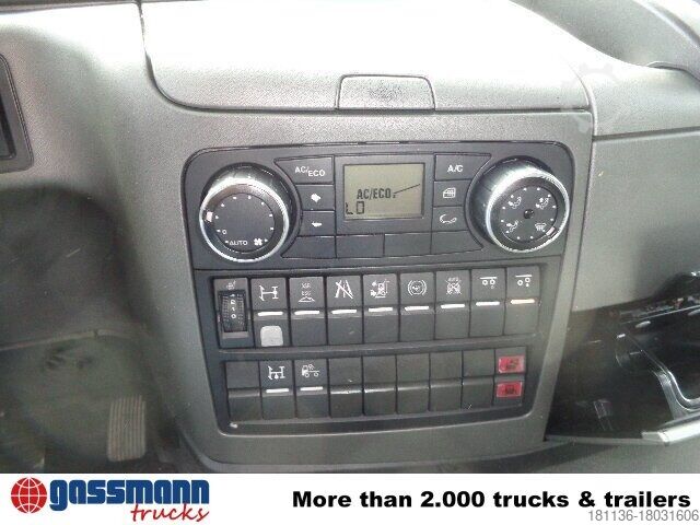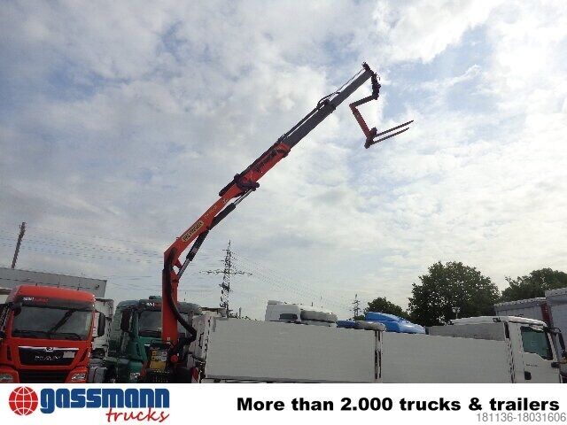 Vehicle location: Bovenden, aluminum body, classified as house, 1x air-sprung seat, seat heating, electric mirrors, heated mirrors, electric window left, electric window right, air conditioning, sun visor, radio-CD, ABS (anti-lock braking system), AS-Tronic automatic transmission, lift and lower function, differential lock, work lights, storage box, air suspension, last axle forced steering, last axle liftable, last axle hydraulically steered, lashing rails, crane at rear, emergency stop, grab control, 2-point hydraulic outriggers, 2x hydraulic extensions, green environmental badge