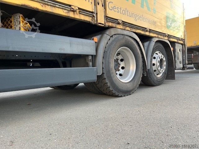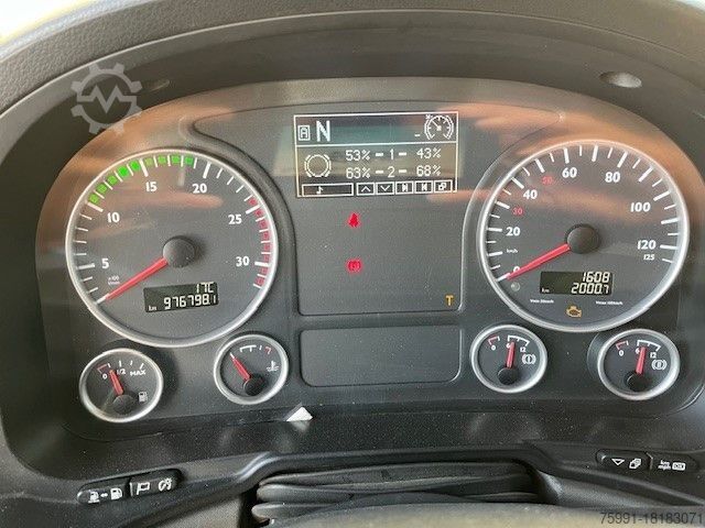 Trailer coupling: Rockinger 400 G 150 A, aerial car phone, work lights (2) on cab roof, exterior mirrors and wide-angle mirror electr. adjustable and heatable, wide-angle mirror with electr. maneuvering aid, battery 225 Ah, curb mirror right electr. adjustable and heatable, bolted bridge mounting bracket, rear axle differential lock, aluminum air reservoir, pressure sensor for air bags, ETA automatic fuse, cab: with air suspension, driver's seat comfort, air-sprung and heated, with lumbar support and shoulder adjustment, remote control central locking, flame-start system, transmission 12-speed - type: ZF 12 AS, Tipmatic, pneumatic transmission shift lock, high-load roll stabilization, automatic air conditioning, fuel tank: combi tank - 480 ltr. Diesel + 75 liters urea solution (AdBlue), Steering wheel with multifunction, LM rims 9.00x22.5 (ALCOA matt on 1st rear axle), LM rims 9.00x22.5 (ALCOA matt on 1st front axle), LM rims 9.00x22.5 (ALCOA matt on 2nd rear axle), heated air dryer, Eberspächer D4S auxiliary air heater, NAS/10C power take-off without flange, spare wheel LM rim 9.00x22.5 ALCOA matt, Retarder, Seat cover/upholstery: comfort quality, Exterior sun visor, Side window sunblind, Driver and passenger door, Socket for cab 12V and 24V, Fleet management system control module, Reinforced front axle shock absorbers, Preparation for engine start/stop system at frame end, Additional high beam/fog lights with cornering light