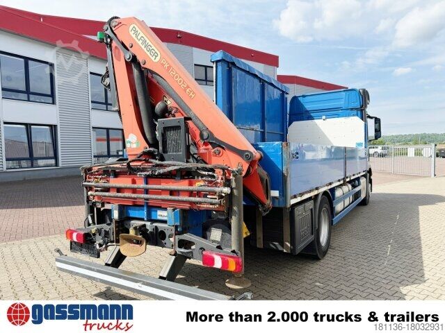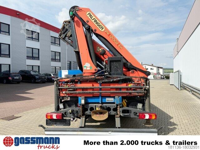 Wheelbase: 5800 mm Body: HEGLA glass transport rack with sliding tarpaulin, flatbed with aluminium side walls & rear crane Palfinger PK 12002-EH B with radio control (remote control) Front axle with air suspension, 8t front axle, rear axle disc wheel 440 Hypoid 13t, EBS with ABS and ASR, disc brakes on VA and HA, condensation water monitoring for compressed air system, additional rear axle stabilizer, aluminium front underride guard, smoker package, comfort bed below, electric stationary air conditioning, residual heat utilization, hot water auxiliary heating, electric lifting roof, pre-installation for comfort bed above, PSM, StreamSpace, comfort locking system, economy drive program, Mercedes PowerShift 3, pre-installation for toll collection, LED daytime running lights, cornering lights, High Performance Engine Brake, ESP, Lane Keeping Assist, Attention Assist, Active Brake Assist, transmission lock for power take-off, MB 131-2c power take-off pump.