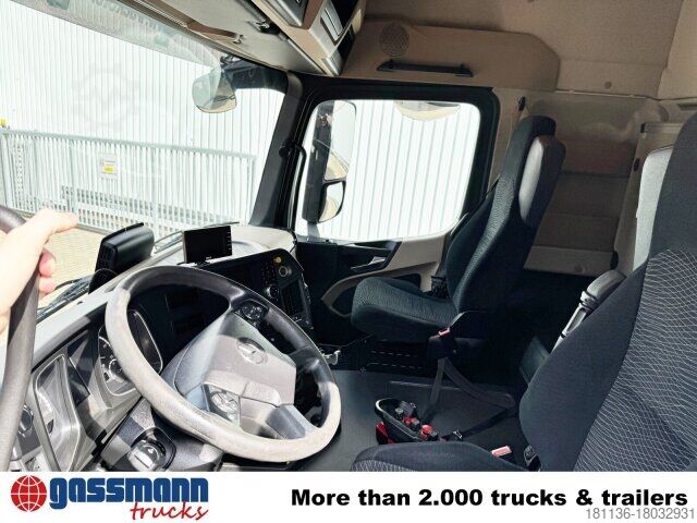 Vehicle location: Bovenden, StreamSpace, Active Brake Assist, Mercedes PowerShift 3, Lg. House, 1x comfort seat, 1x reclining seat, heated seats, electric mirrors, heated mirrors, electric window left, electric window right, air conditioning, sun visor, cruise control, auxiliary heating, air horn, ABS (anti-lock braking system), traction control system (ASR), constant throttle, power take-off, lift+lower, differential lock, fog lights, work lights, storage box, air suspension, air+light trailer hitch, aluminum tank, lashing eyes, U-protection, aluminum side guards, roof hatch, roof hatch, air suspension Aluminum side guards, roof hatch, crane at the rear, emergency stop, foldable, 2-point hydraulic outriggers, radio remote control, 3x hydr. extensions, green environmental sticker
