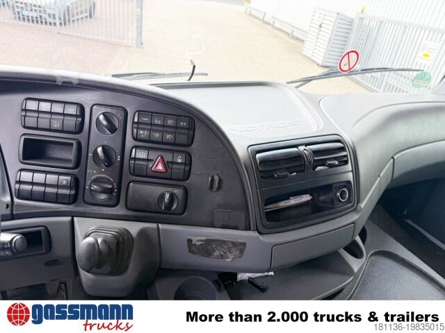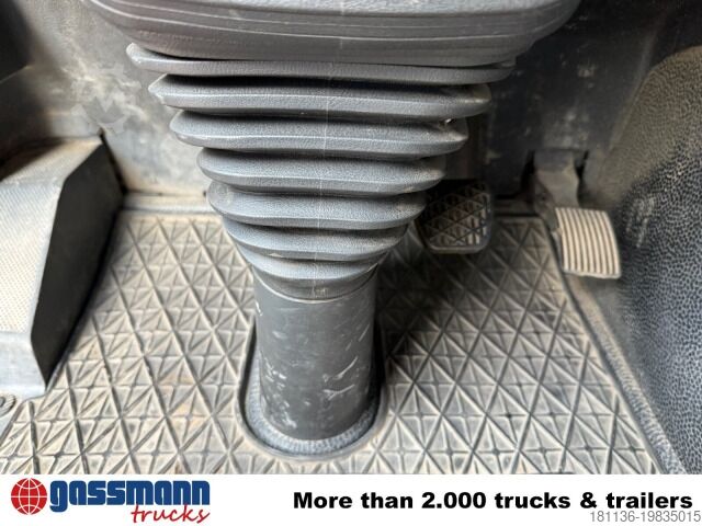 Vehicle location: Bovenden, at company premises. 1x comfort seat, seat heating, electric mirrors, heated mirrors, electric window left, electric window right, air conditioning, sun visor, cruise control, ABS (anti-lock braking system), ASR (traction control), constant throttle, PTO (power take-off), automatic transmission, differential lock, fog lights, storage box, leaf/air suspension, trailer coupling with air and lighting connections, aluminum tank, low-noise G1, rear axle liftable, lashing eyes, underrun protection, hinged flaps, roof hatch, crane behind cab, emergency stop, foldable, 2-point hydraulic stabilizers, radio remote control, 5x hydraulic extensions, green environmental badge.