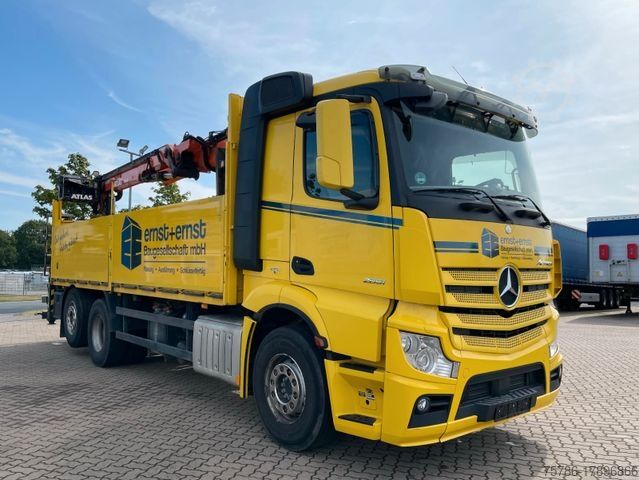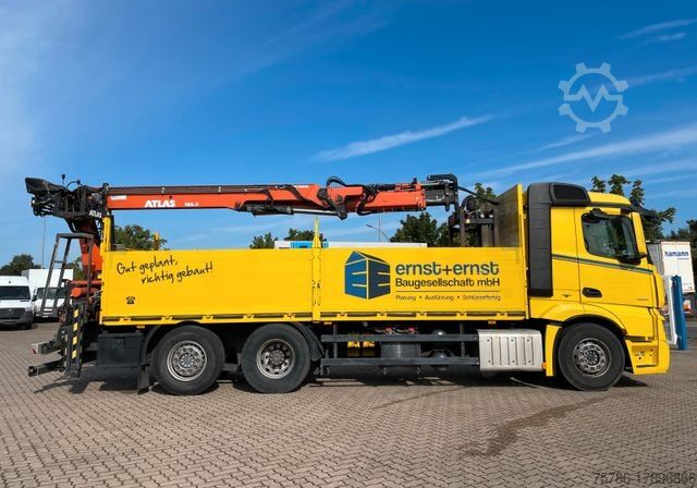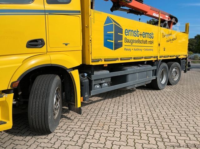 Flatbed with aluminum side walls, dimensions 6,500mm x 2,480mm x 960mm, Atlas crane model 186.3, year of manufacture 2014, 2 point support, reach/load capacity: 5.9m=3,200kg, 8.5m=2,120kg, 11.2m=1,600kg, high stand, stone tongs can be purchased for an additional charge.