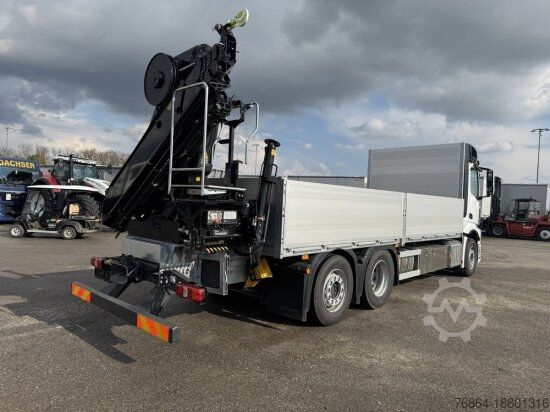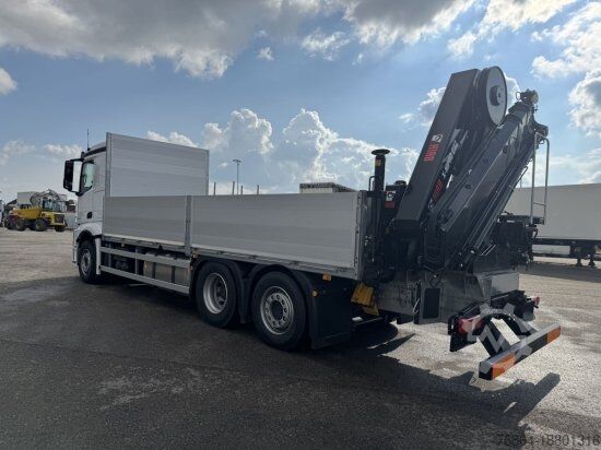| Mercedes 2653 6x2 flatbed with Hiab crane with radio remote control | Automatic, retarder | Axle scale | 5 hydraulic extensions | EURO 6 E | Trailer coupling | Heated seats, auxiliary heating, air conditioning, refrigerator | Cruise control, electric windows, electric mirrors | Steering axle + lifting axle | Tires 385/55/R22.5 | Wheelbase 4900 | Interior dimensions: L: 6.30m, W: 2.48m, side wall height 0.90m | Total length dimension A 10.05 meters | Errors, input and advance sales excepted.