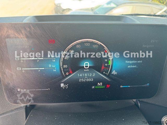 Axle load - measuring device, Axle load front axle 8.0 t, Airbag driver's side, Ambient lighting LED (driving and living), Trailer stabilization program TSA, Audio system: Digital radio DAB / DAB+, Exterior mirror base MirrorCam chrome / body color, Brake connection standard and DuoMatic, Cockpit Multimedia interactive, Compressed air horns (2) on cab roof, Electrical pre-installation in cab 24V / 100 A, Driving assistance system: Cornering assistant, Driving assistance system: High beam assistant and cornering light, Driving assistance system: Roll control assistant, Luggage rack rear wall top, Transmission 12-speed - type: G 211-12, Transmission lock for power take-off, Rear lights LED, Cabin filter construction site vehicles, Automatic air conditioning, Comfort telephony (Bluetooth) with induction charging cradle, Mudguards 3-piece, Mudguards 3-piece with splash guard, Fuel tank: 630 ltr. aluminum, left, cool box / refrigerator, steering wheel with multifunction (leather), air compressor 2-cyl, engine brake reinforced, engine compartment encapsulation reinforced, trailing axle 7.5 t steered, unloadable, power take-off MB 124-10c, parameterizable special module, wheelbase variant 4900 mm, frame lowering with bellows residual pressure control, frame overhang 2550 mm, rain sensor, retarder, reversing alarm acoustic and hazard warning light (warning signal outside), switch for MirrorCam on bed, automatic circuit breaker, seat cover / upholstery: Velour front passenger seat, Seat cover / upholstery: Velour driver's seat, Seats in cab: Armrests on both sides of front passenger seat, Seats in cab: Swivel comfort driver's seat, Exterior sun visor, Side window sunblind, Driver's door, Steel rims 11.75x22.5 (on front axle), Storage flap outside left, 24V / 25 A socket in passenger footwell, 24V socket in cab, Preparation for 4 surround view cameras (display in on-board monitor), Preparation for rotating beacon, Preparation for additional headlights, Curtain for sleeper cab, Additional thermal insulation, Oil cooler for transmission