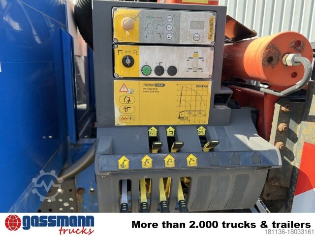 Vehicle location: Bovenden, ClassicSpace, Active Brake Assist, Mercedes PowerShift 3, Mtlg. House, 1x comfort seat, heated seats, electric mirrors, heated mirrors, electric window left, electric window right, air conditioning, sun visor, cruise control, auxiliary heating, air horn, ABS (anti-lock braking system), traction control system (ASR), constant throttle, power take-off, lift+lower, differential lock, fog lights, work lights, storage box, air suspension, air+light trailer hitch, aluminum tank, lashing eyes, U-protection, aluminum side guards, roof hatch, roof hatch, air suspension Aluminum side guards, roof hatch, crane at the rear, emergency stop, foldable, 2-point hydraulic outriggers, radio remote control, 3x hydr. extensions, green environmental sticker